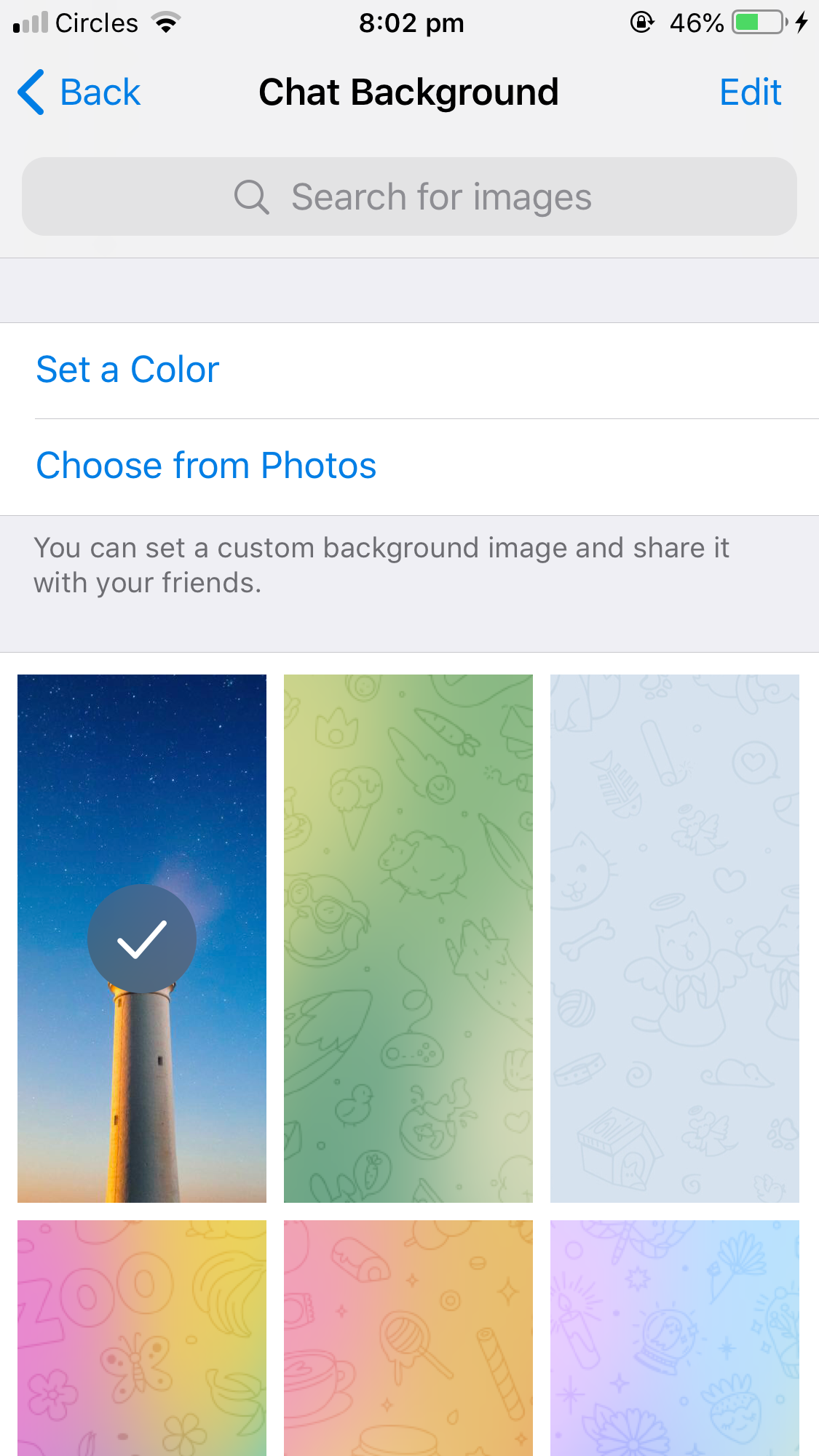So at the moment the wallpaper is full of flowers and if it were any more girly it. You can choose a wallpaper with a picture a solid color or you can upload one from your devices gallery. Rivaling WhatsApp and Signal Telegram has jam-packed the app with privacy add-ons and customization optionsThe app allows you to change the background wallpaper text size theme app.