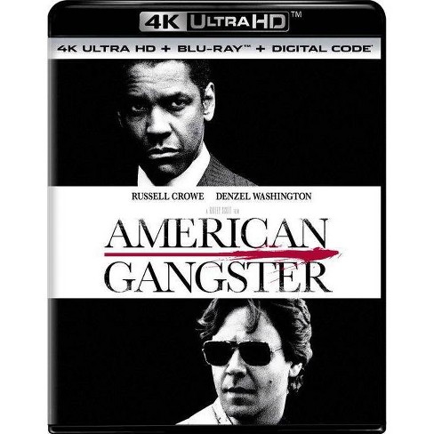 American Gangster 4K UHD Blu-ray Digital. Armed with ruthless streetwise tactics and a strict sense of honour crime boss Frank Lucas Washington rules Harlems chaotic drug underworld. With Denzel Washington Russell Crowe Chiwetel Ejiofor Josh Brolin.